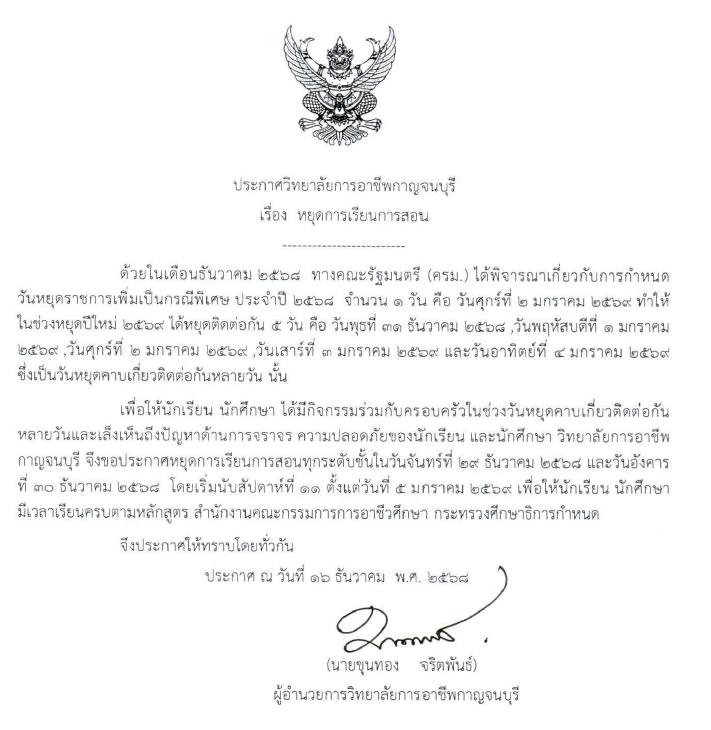 1.เรื่อง คู่มือนักเรียน นักศึกษา วิทยาลัยการอาชีพกาญจนบุรี ประจำปีการศึกษา2566 คลิก